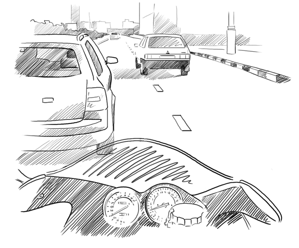 Следующая причина «неожиданного» появления мотоциклиста – его скорость в потоке. Водитель машины не будет одновременно совершать маневр и смотреть в зеркало. Он не будет всматриваться назад вдаль и выискивать там мотоциклиста, он кинет взгляд на долю секунды, убедится, что помехи далеко и начнет перестраиваться. И между этими двумя событиями проходит некоторое время. Если мотоциклист едет намного быстрее потока, то он рискует попасть в этот самый промежуток времени между тем, как водитель обгоняемой машины посмотрел назад и начал маневр. Мало того, если мотоциклист при этом перестраивается через два ряда, то он попадает в этот промежуток, даже не сильно превышая скорость потока. К тому же, водителю автомобиля трудно определить скорость мотоциклиста в зеркала, даже если он его видит. Кстати, это в большей мере должно волновать самих мотоциклистов, поскольку они занимают места на дороге меньше, и могут занимать любое положение в ряду.