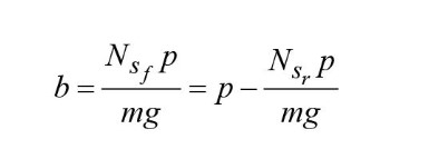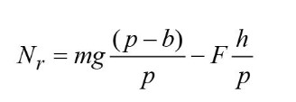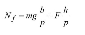 Равновесие моментов вокруг центра тяжести: − F*h – Nr*b + Nf*(p − b) = 0