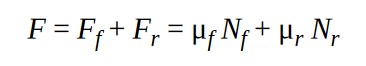 Где F – это общая сила торможения, равная сумме Ff и Fr – тормозных сил переднего и заднего колес.