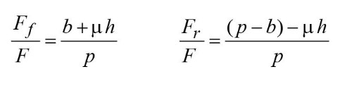 Как видим, перераспределение нагрузки F *h / p прямо пропорционально общей тормозной силе и высоте центра тяжести и обратно пропорциональна колесной базе.