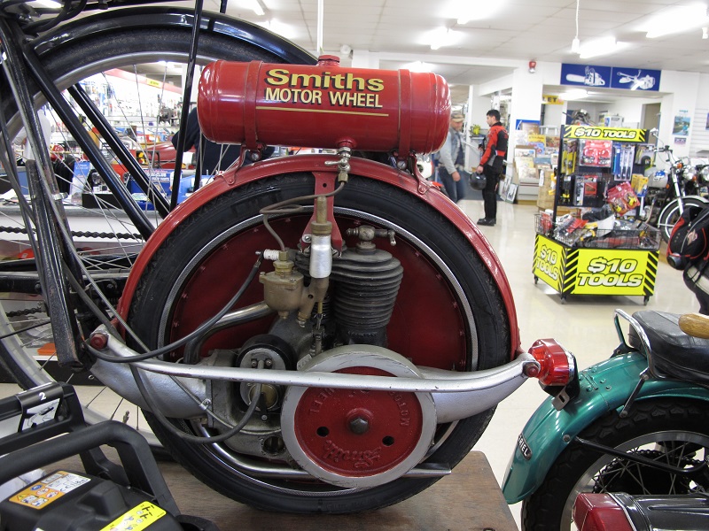 Мы уже привыкли, что современнные мотоциклы чаще всего имеют привод на заднее колесо и это либо цепь, в большинстве случаев, либо карданный вал. Но на заре мотоциклостроения конструкторы испытвали и более экзотические типы приводов. Например, вспомогательное боковое заднее мотор-колесо