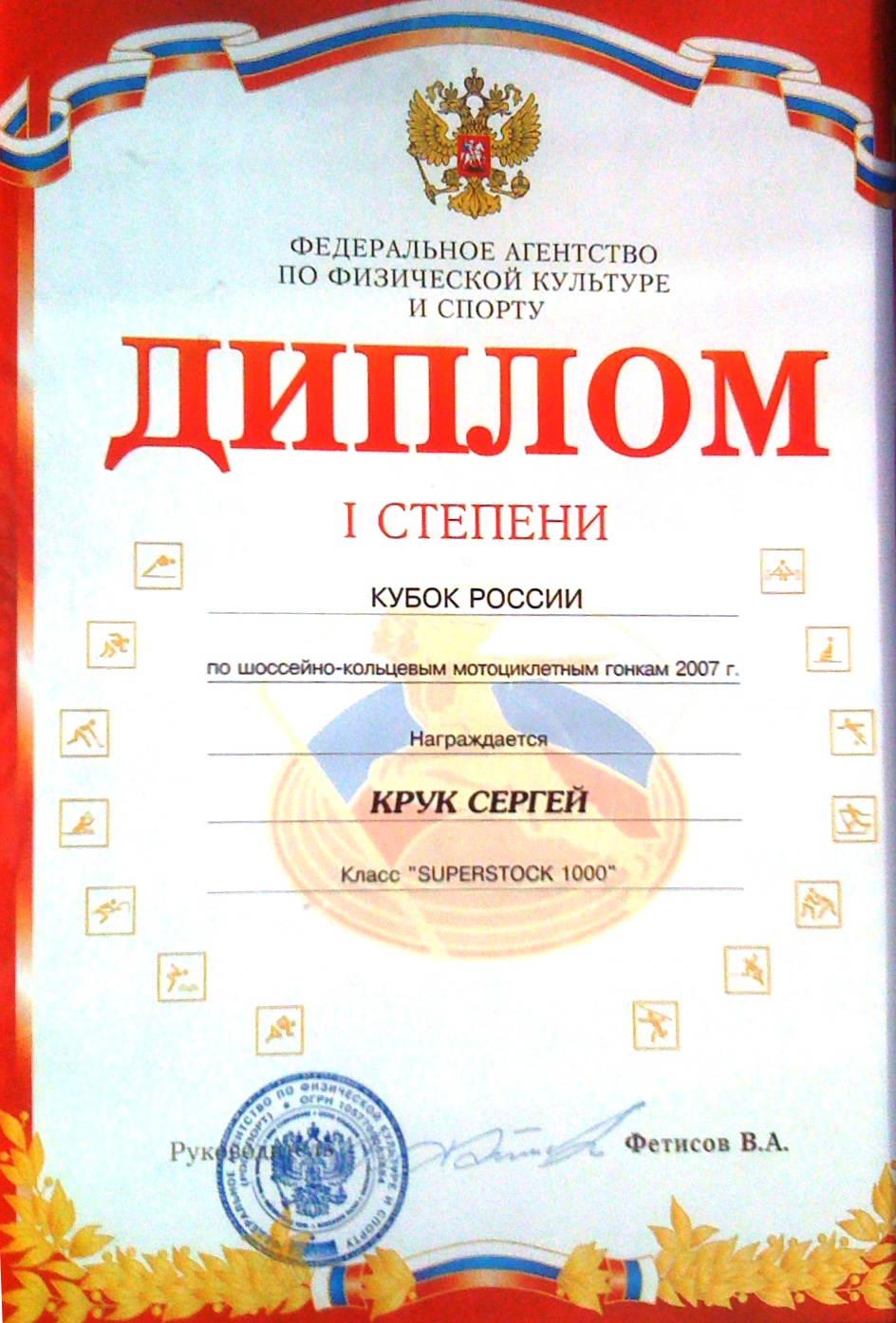Победитель Чемпионата России по Шоссейно-Кольцевым Мотогонкам в классе SuperStock-1000.