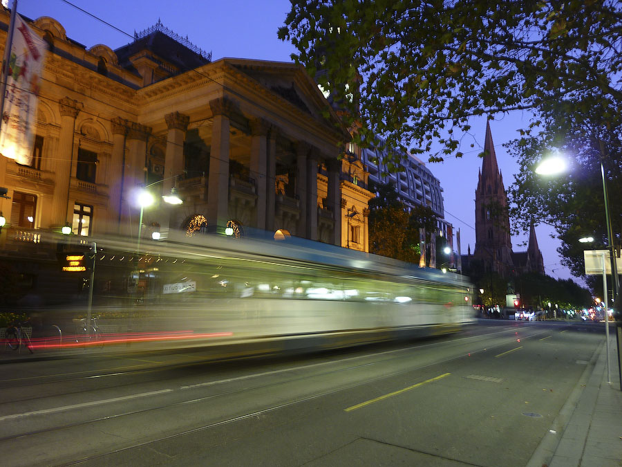 Вечерний Мельбурн: гиперзвуковой трамвай. Кстати, трамвай - символ Мельбурна