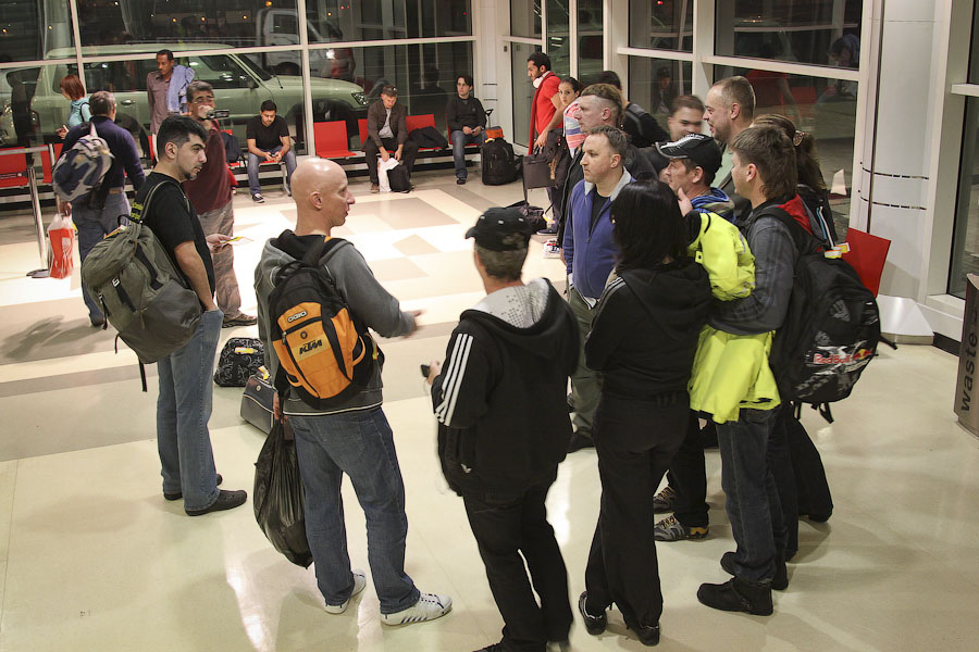 Capt: Австралия, Австралия витало незримо в вокруг, но что означали эти слова я узнал более подробно в середине октября, на одной из традиционных посиделок мотоконфы автору, где присутствовали Gur и NiLs. А через несколько дней на закрытии сезона в ВКС поинтересовался, что надо сделать для того, чтобы попасть в число участников. В ответ услышал “Покупай билеты(с)” - вот и все. Стал узнавать про билеты на нужные даты и оп-па: на катарцев, где летит почти вся группа стоимость на 10-15 круб больше, чем отдавали счастливые обладатели билетов. Жаба подняла голову и взял билет на Etihad... Но летел не один- на этом рейсе летели Паша и Андрей из Мурманска. Кстати- не надо летать этой компанией. Сервис уж не айс, хотя алкогольные напитки разносят. правда при заказе водки и сока надо не забыть сказать “отдельно” . На обратном пути из-за этой оплошности пришлось пить коктейль “отвертка” мне, а Паше “кровавую мэри”. Собственно после покупки билетов как уже написали и понеслась остальная движуха со встречами в Ерше. Одна из которых обернулась банальной пьянкой а не сбором документов. Под Новый Год нам сделали подарок-дали визы. Осталось до отлета совсем недолго...