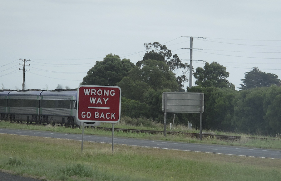 Студент: Пo мере приближения к Мельбурну приходило неосознаваемое пока чувство, что путешествие заканчивается. И, как бы материализуя это чувство начали появляться вот такие знаки