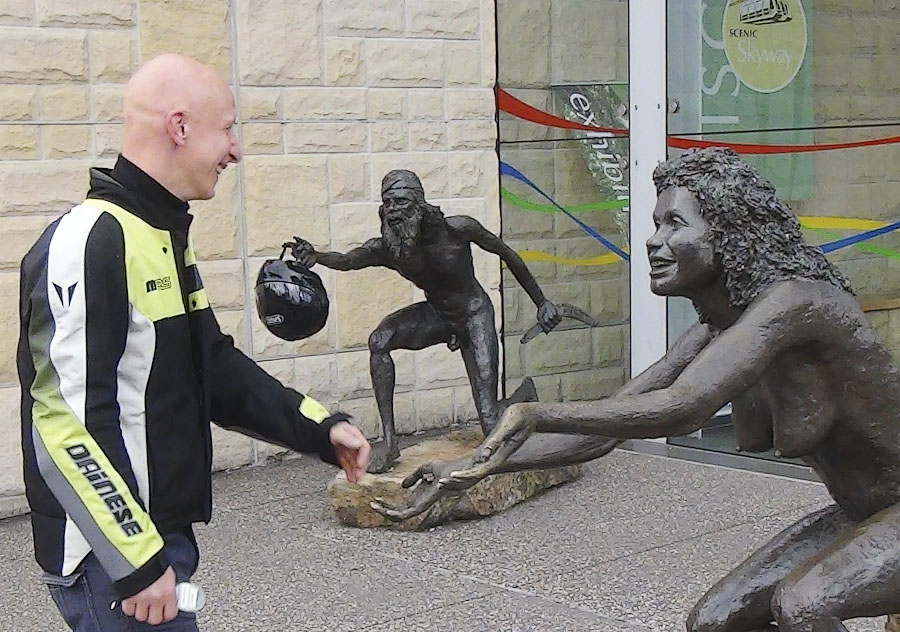 Повсюду можно встретить скульптурные композиции, обозначающие хрен знает что, эта видимо, должна была сказать: Серегу манят женщины и он забыл про мотоциклы