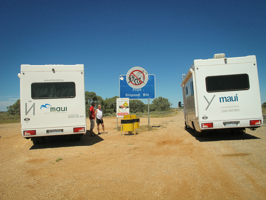 А на границе штатов - еще одно испытание для нашей расшатанной Австралией психики - карантин. Это означает - выкинуть (да-да, в помойку!) все (все! А не только уже испортившиеся!) овощи-фрукты, купленные (даже если только что) в покидаемом штате.