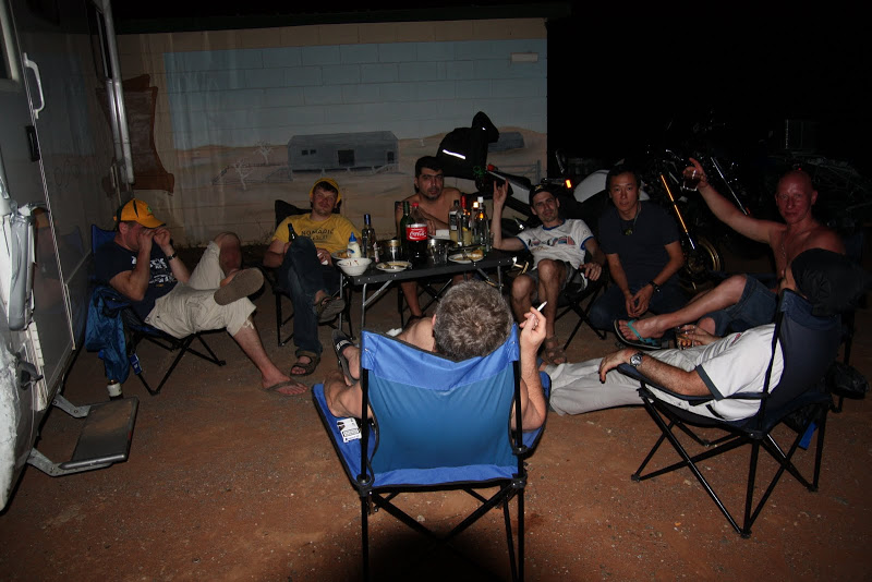 Capt: Поскольку Паша, Баварец и я вылетали из Домодедово другим рейсом, то никакого трансфера нам не было заказано - была выдана бронь гостиницы с указанием адреса и напутствие “езжайте на такси-там недалеко” то мы были спокойны. Даже на пограничном контроле мы не вызвали подозрение, когда показали ввозимые пищевые продукты на континент (пара упаковок чая у меня). Видимо человек, несущий шлем вызывает тревогу только у бизнесменов, разъезжающих в бронированных лимузинах в сопровождении охраны, а не у австраллийских пограничных служб. Выйдя из здания аэропорта включил навигатор и вбил адрес отеля перед посадкой в такси. Это пригодилось- таксист провез нас мимо отеля изначально. Зайдя в номер, приняв душ и переодевшись решили провести рекогносцировку на местности до подхода основных сил. Заодно и поужинать. Последний пункт программы и исполнили в китайском ресторане, к сожалению не имеющем лицензии на продажу алкоголя. Так что, ужин не затянулся. На обратном пути зашли на АЗС для покупки в ее магазинчике съестного и воды и слегка обалдели от уровня цен на фрукты. Дороговато(с) ! Ожидая группу решили проинспектировать бар в гостинице с названием “Голубая Луна” на предмет пива. Выпили по паре пива и пошли в номер накрывать стол хлебом-солью для прибывающих. Однако прибывшие желали не выпить, а посетить душ и поесть. Чтож -пришлось идти вторично в индийский квартал. Правда в ресторане не засиживались а пошли обратно в гостиницу праздновать прилет. Празднование затянулось часов этак до 4-5 по местному времени (напомню разница с московсим временем в 7 часов). А утром пошли в контору по прокату мотоциклов и гулять до вечера по городу.