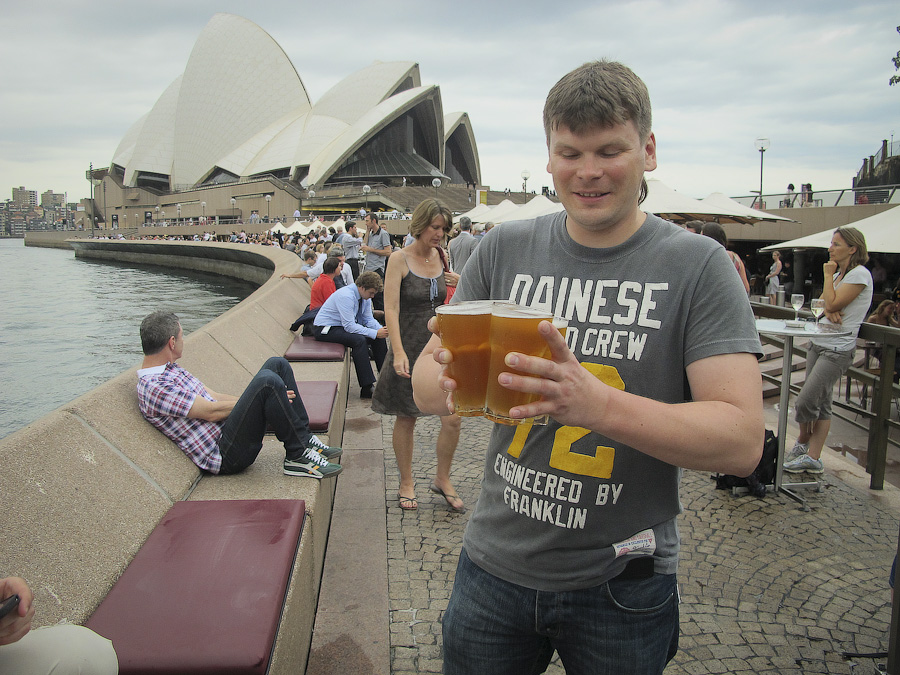 В прошлом году мы с Гуром, Биктопом и Ури ездили в Новую Зеландию и проездом заскочили в Сидней, благо транзитная австралийская виза позволяет задержаться там на трое суток. Еще тогда бросили монетки в бухту около Опера Хауз и обещали вернуться.