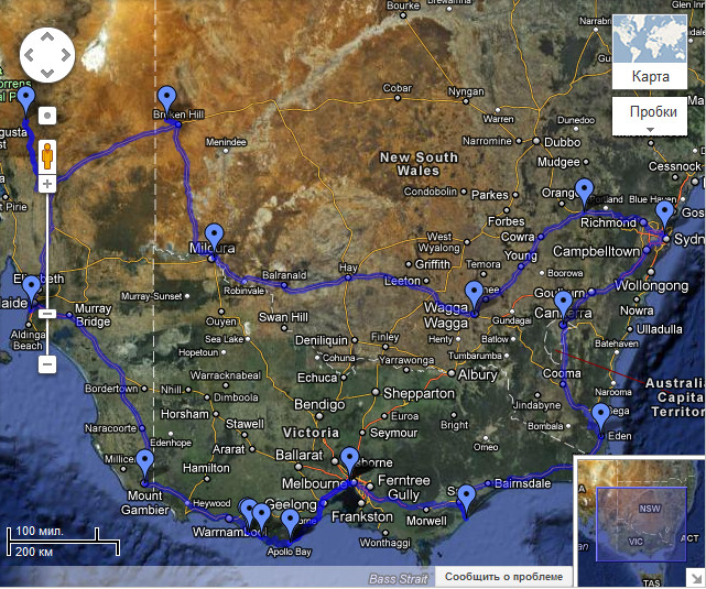 Распланировали маршрут - получилось 4500 км. Эдакое кольцо по Южным штатам: Виктория, Южная Австралия и Новый Южный Уэльс. Подробно расписали каждый день, зарезервировали кемперы, караван-парки, гостиницу в Мельбурне и много других мелочей, необходимых не только в дороге, но и при оформлении визы. Авиабилеты были уже куплены заранее и подешевке.
