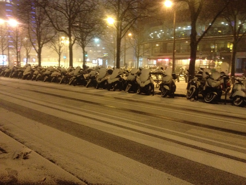 Пересаживаюсь на другой поезд и еду на юг. Тулуза тоже встретила снегом — местные говорят, что такое бывает крайне редко, мне повезло. Встретился с продавцом, забрал мотик и в путь. До темноты добрался до Нарбонны, завтра утром рано стартую и попробую проскочить до Генуи.