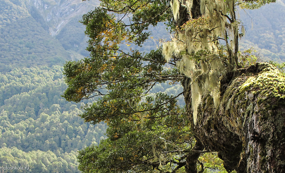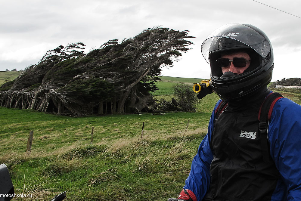 Чем южнее, тем холоднее. Несмотря на то, что Новая Зеландия находится приблизительно на широтах южной Европы — а если проткнуть глобус в крайней южной точке Slope Point, то игла вылезет недалеко от итальянского города Больцано — здесь не жарко. Под влиянием постоянно дующих холодных ветров Антарктиды деревья растут вбок, берёзок и папоротников уже не встретишь.
