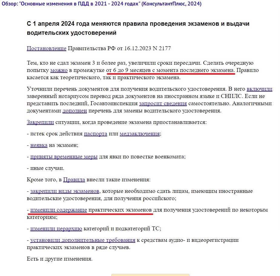 Но, самое неприятное новшество заключается в сроках пересдачи. Как и раньше первые три попытки делаются с периодичностью 7 дней. Если не сдаешь, то записываешься на пересдачу на следующую неделю, готовишься и приходишь. После 3-й пересдачи можно было записаться на повтор не ранее, чем через 1 месяц. Теперь это правило отменено и введено новое: пересдавать можно не ранее 6-ти и не позднее 9-ти месяцев. Это касается и теории и практики. Если мы не сдаем теорию 3 раза подряд, то следующая пересдача будет только через полгода, не раньше. ГАИ принимает экзамены по практике в течение летнего периода, те же полгода. Если 3 раза не сдаем практику, то следующая попытка будет в следующем сезоне, но с учетом того, что теория действует тоже полгода, то в следующем сезоне ее придется сдавать заново. К тому же, попытки не обнуляются и все последующие пересдачи будут в таком же графике - не раньше, чем через полгода, и теория, и практика.