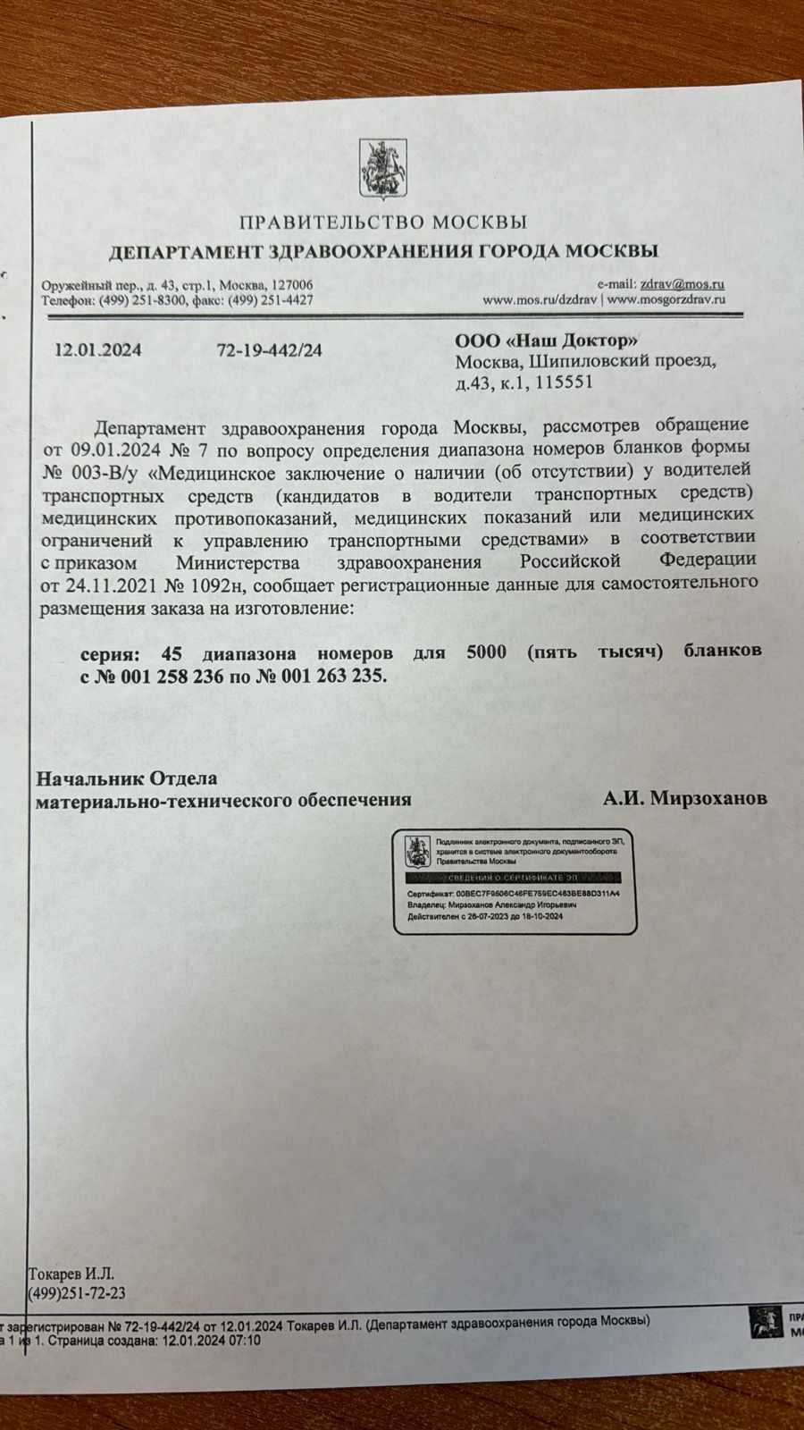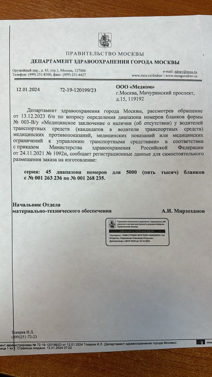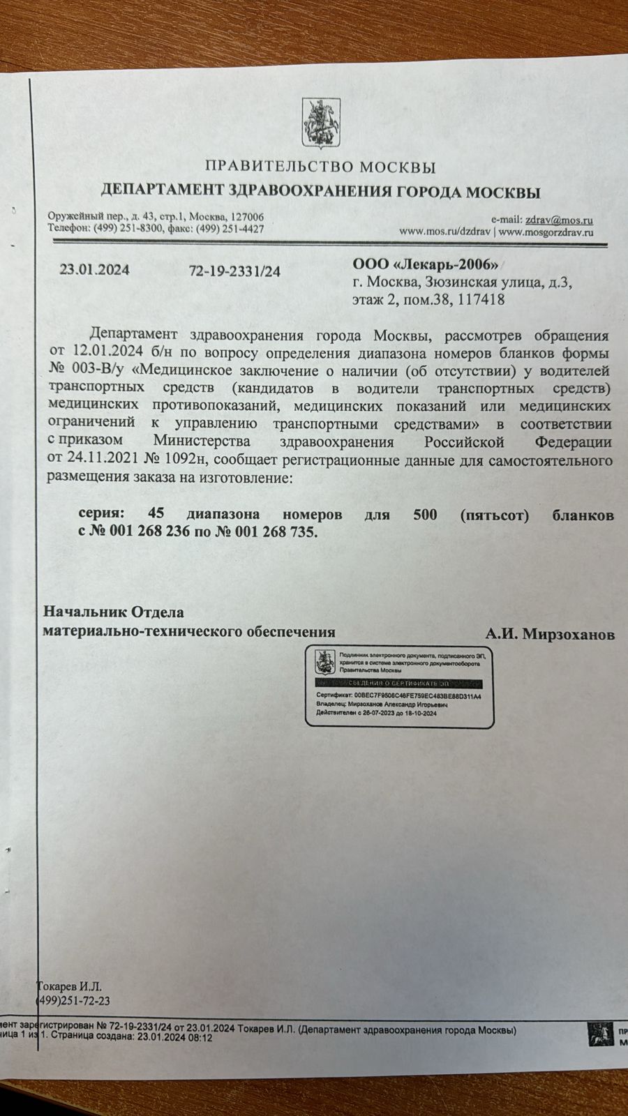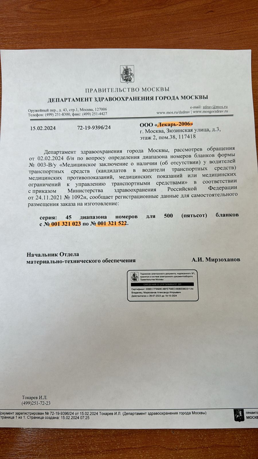 В связи с участившимися случаями появления "левых" справок Депздрав прислал список некоторых медкомиссий, чьи справки, выданные в 2024 году, действительны.