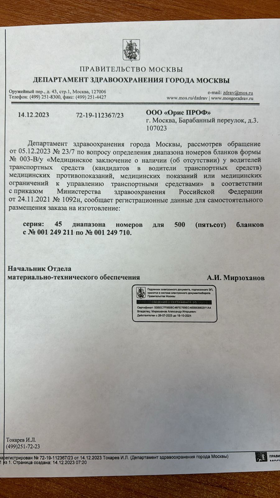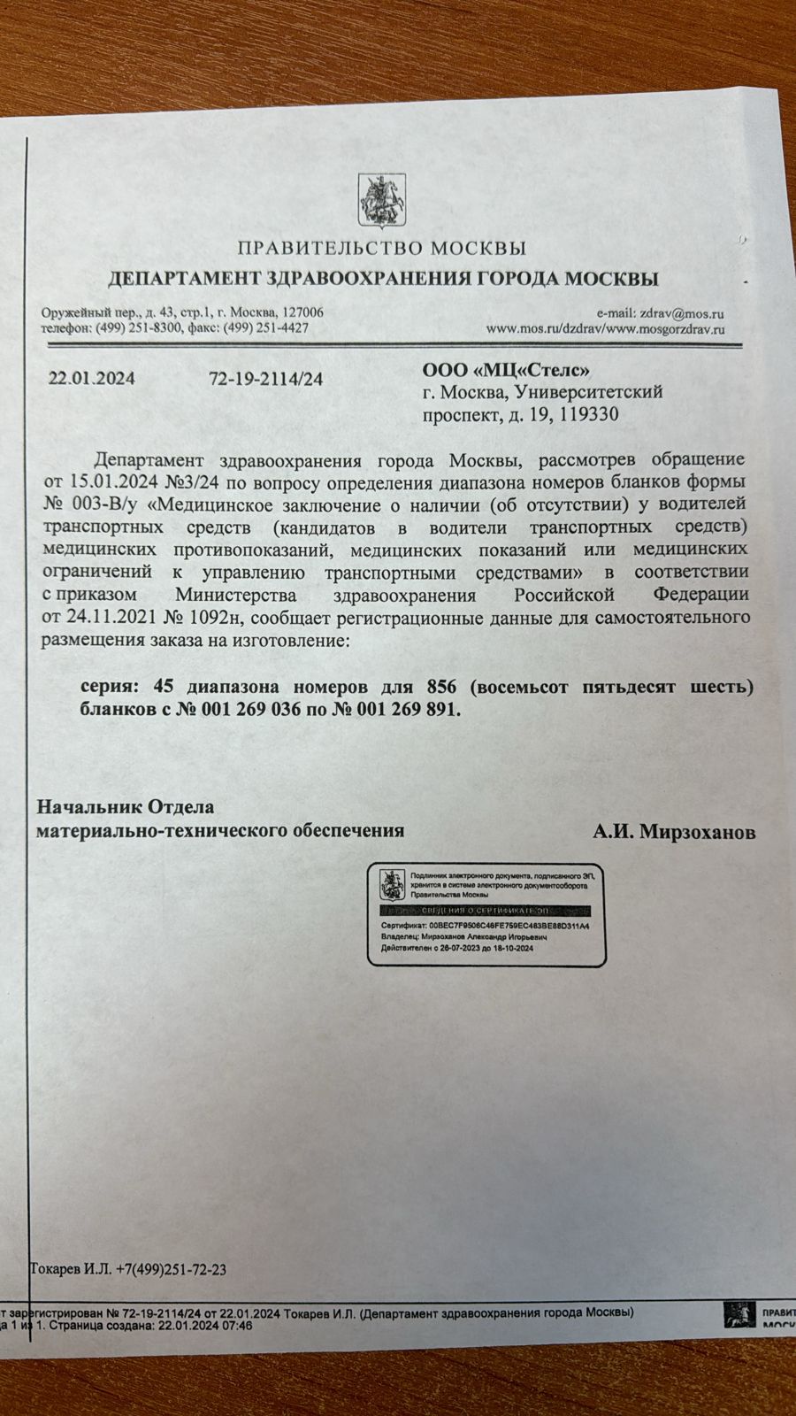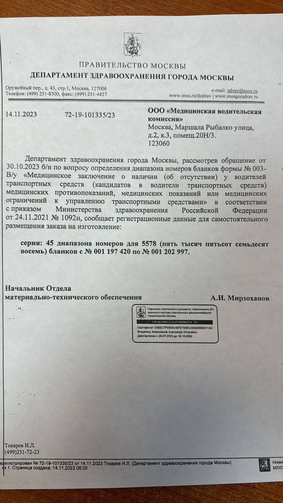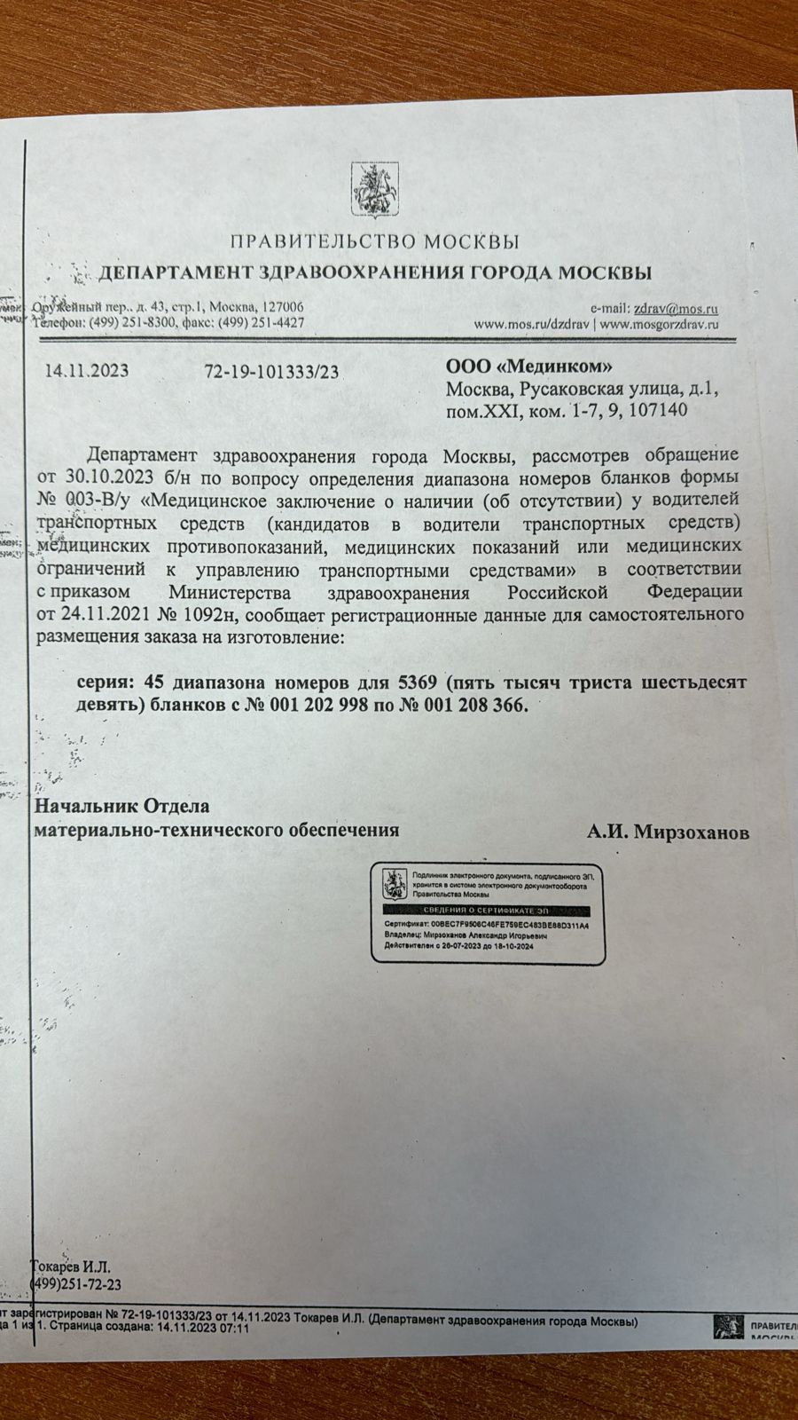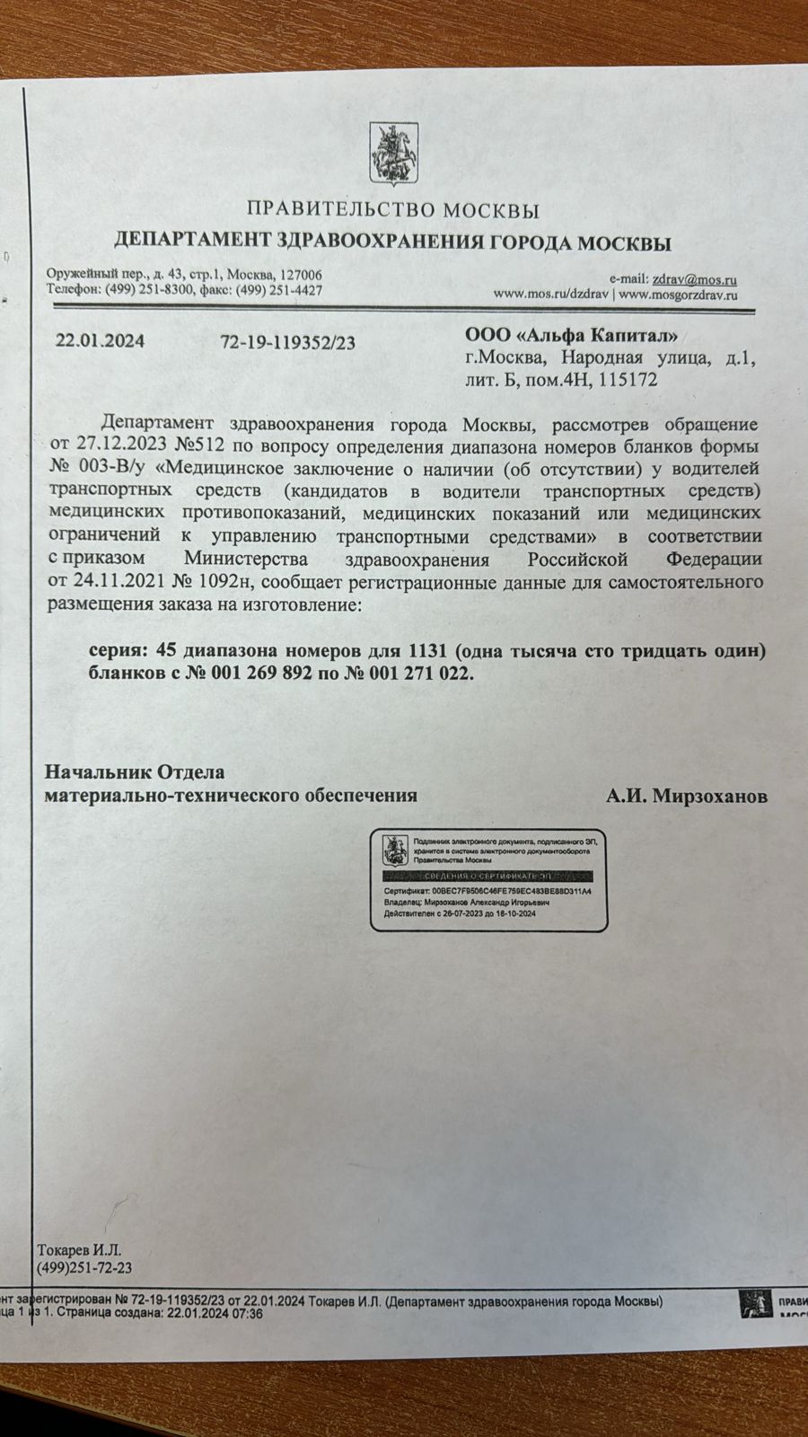 В связи с участившимися случаями появления "левых" справок Депздрав прислал список некоторых медкомиссий, чьи справки, выданные в 2024 году, действительны.